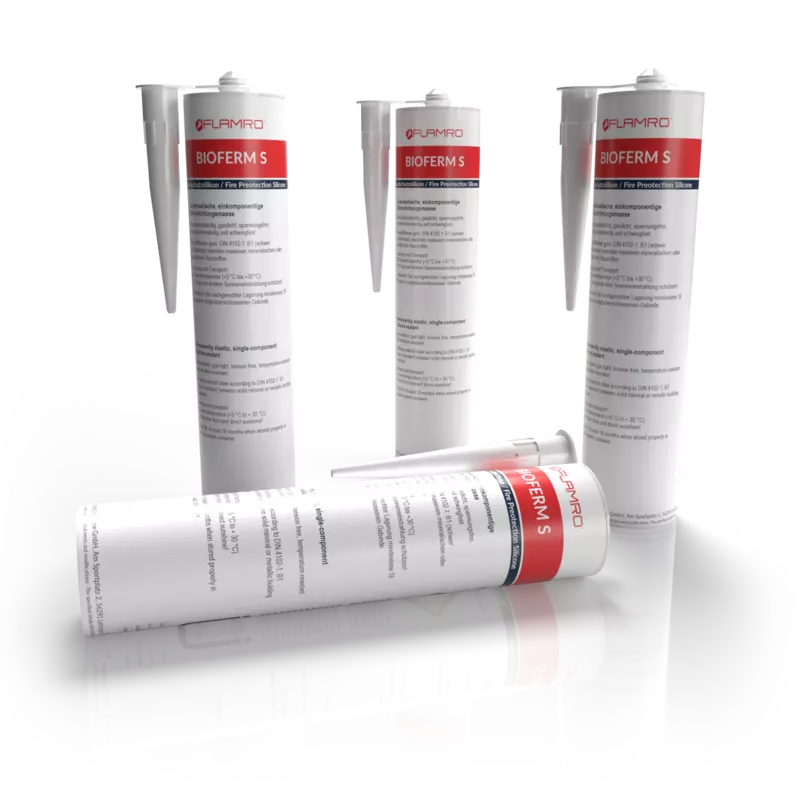 Die Dichtungsmasse BIOFERM S aus Brandschutzsilikon ist zur Abdichtung von Bauteilfugen & für Rohrabschottungen geeignet.